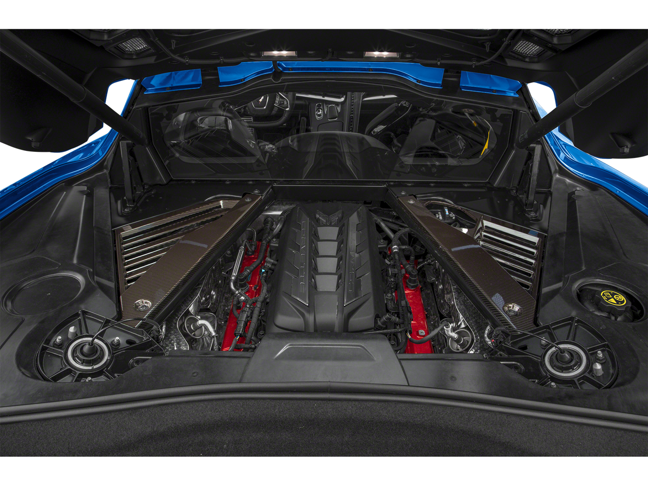 - Bright red-painted calipers, a transparent removable roof panel, and an Edge Red LT2 engine cover